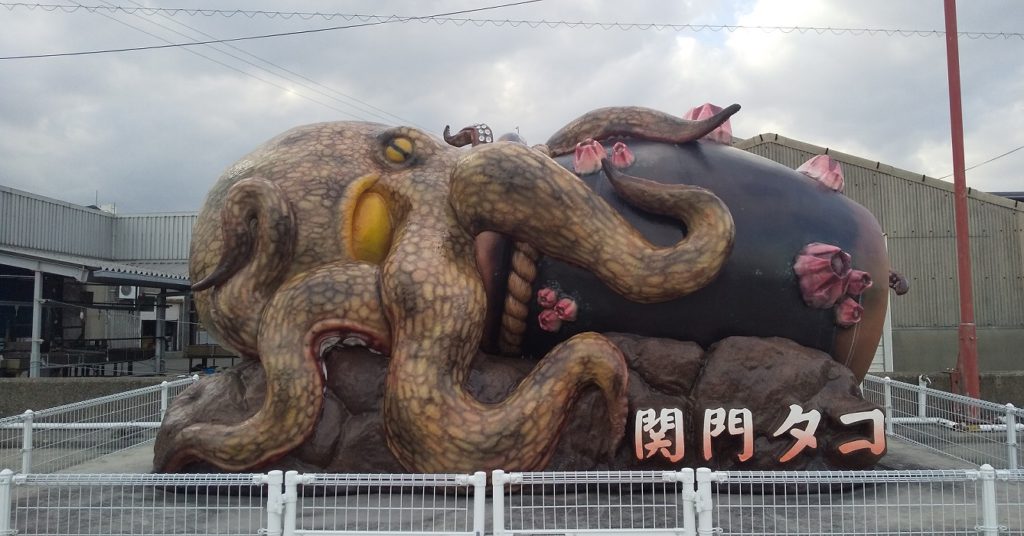 インパクト大! 長府観光会館前の横断歩道を渡り、道に沿って歩くと長府漁港があります。長府に住んでいますが、私は初めて長府漁港に行きました。春先まで休業とのこと、今日はひっそりしていました。