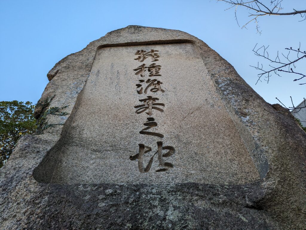 「蚕種渡来之地(さんしゅとらいのち)」記念碑です。説明が書かれた板によると、日本の養蚕の始まりと伝えられているそうです。