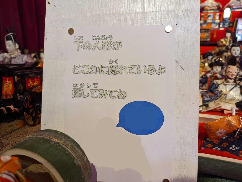 現地で探していただきたいので、上の画像では対象の人形を隠していますが、見つけられたら嬉しいので、ぜひ探してみてください!